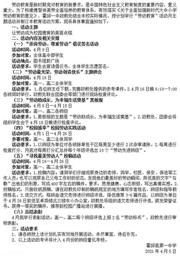 關(guān)于“勞動(dòng)教育”活動(dòng)月的通知