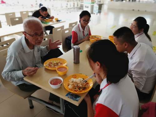 霍邱一中團(tuán)委負(fù)責(zé)人向戴老介紹了2021年的高考情況。戴老還與師生一起在食堂用餐,談笑風(fēng)生。