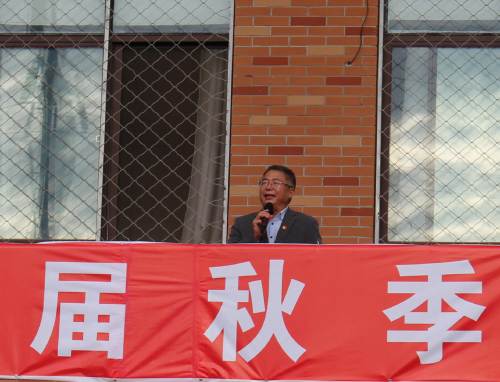 楊明生預(yù)祝運(yùn)動(dòng)會(huì)取得圓滿成功,宣布霍邱一中第50屆秋季田徑運(yùn)動(dòng)會(huì)開幕。