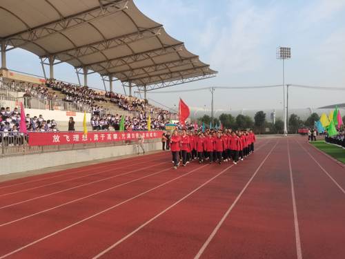 伴隨著雄壯的運動員進行曲,在國旗方陣、鮮花方陣、彩旗方陣的引領(lǐng)之下,三個年級九十個班級的代表隊邁著矯健的步伐、喊著響亮的口號,依次從運動場主席臺前走過,以昂揚的姿態(tài)接受了校領(lǐng)導的檢閱。