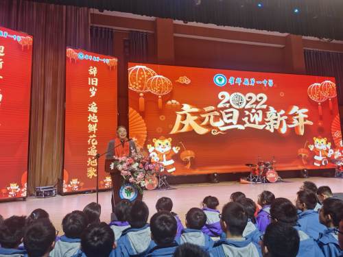 晚會(huì)由一中兩位老師主持。校長(zhǎng)楊明生致辭,回顧了2021年的辦學(xué)情況,表示,新年的鐘聲即將敲響,奮進(jìn)的號(hào)角再次吹起,嶄新的365個(gè)閃光的日子,蘊(yùn)含著無(wú)限的機(jī)遇;勤勞勇敢的霍邱一中人一定會(huì)只爭(zhēng)朝夕,拼搏進(jìn)取,用如椽之筆繪就壯麗畫(huà)卷,譜寫(xiě)華美詩(shī)篇。