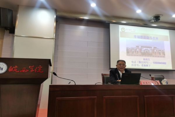 11月2日下午,全國先進工作者,教書育人楷模,霍邱一中黨委書記、校長楊明生應邀為皖西學院師生做了題為《幸福都是奮斗出來的》專題報告。皖西學院近兩年新進教師和師范專業(yè)的部分學生代表共200余人參加了報告會。會議由皖西學院黨委書記袁維海主持。
