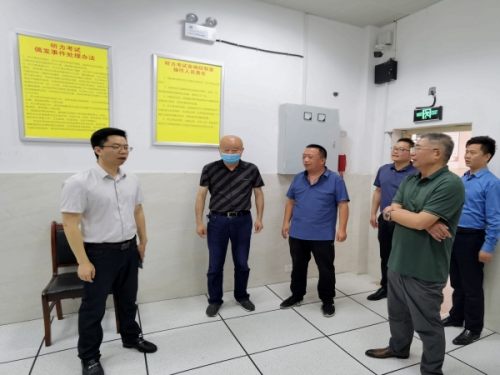 活動中,何超一行對考生出入通道、視頻監(jiān)控室、語音播放室等處進行了仔細檢查,詳細了解了考點周邊環(huán)境等情況。