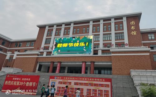 學(xué)校圖書館的LED戶外屏幕從9月9日早6點(diǎn)起至9月10日晚22點(diǎn),以字幕滾動(dòng)方式深情播出:“躬耕教壇,強(qiáng)國(guó)有我”、“老師,您好!”、“教師節(jié)快樂!”、“老師,您辛苦了!”、“賡續(xù)百年初心,擔(dān)當(dāng)育人使命”等標(biāo)語。