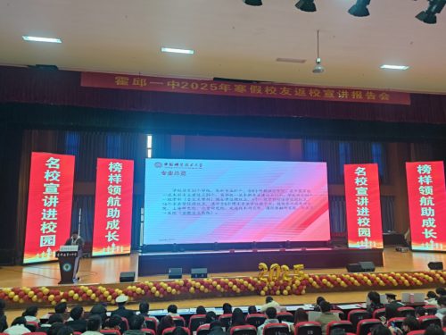 為進(jìn)一步做好大中銜接工作,搭建大中學(xué)校交流平臺,幫助一中學(xué)子了解大學(xué)招生政策、專業(yè)動態(tài)、校園生活等情況,霍邱一中邀請校友重返母校,于2025年1月22日下午在大禮堂開展高校學(xué)生寒假返校宣講活動。校領(lǐng)導(dǎo)王德寶、許正田、余其權(quán)、李開勝、崔紅令參加了報告會,對廣大學(xué)子的到來表示熱烈歡迎,并為宣講代表頒發(fā)了社會實踐證書。
