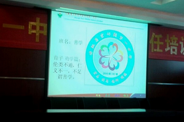 8月17、18日的設計活動中,班主任們齊動手、齊動腦,設計了個性十足的班名、班規(guī)、班訓、班徽、班標、班號、班旗,如高一(9)班班名為“善學”,取自《荀子·勸學》中的“倫類不通,仁義不一,不足謂善學”,設計意圖在于激勵學生專心致志地學習,堅守道德規(guī)范;高一(16)班班徽,以象形與抽象圖案組合成“16”的造型,簡潔明快,寓意在豐富多彩的學習中,力爭向上,體現(xiàn)出16班不斷進取的精神,生命力、現(xiàn)代感突出,且易識別,產生了很強的視覺親和力與記憶力。