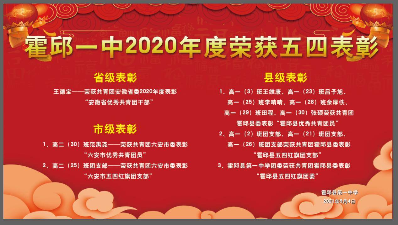 霍邱一中團(tuán)組織和團(tuán)干在2021年五四期間獲多項(xiàng)獎(jiǎng)勵(lì)。具體情況如下: