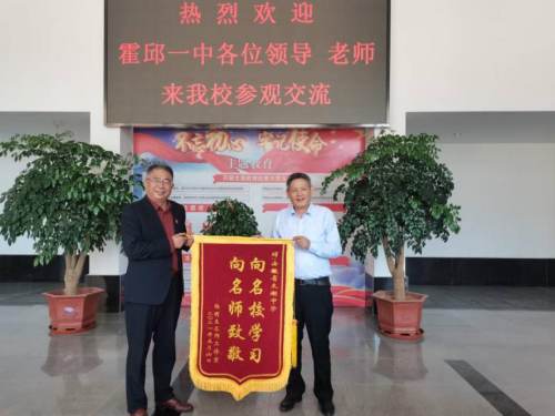 活動(dòng)中,首席名師楊明生校長將錦旗贈(zèng)送給太湖中學(xué)領(lǐng)導(dǎo)。