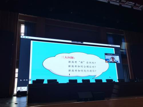 與會人員收看了江蘇省啟東市教研室主任王曉東以《新高考備考:研究、探索、實踐》為題所做的在線輔導(dǎo)講座實況直播。