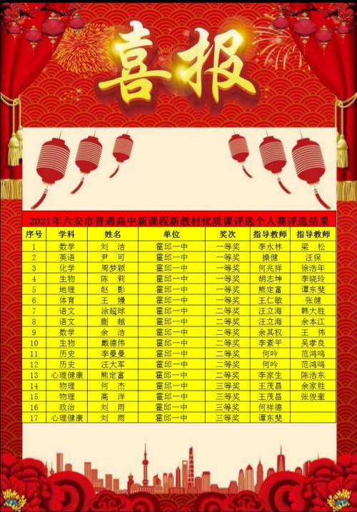 霍邱一中多名教師在市優(yōu)質(zhì)課比賽中獲獎