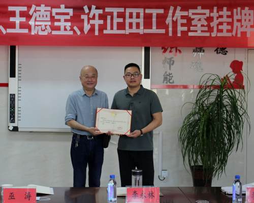 儀式上,縣教育局人事股負責(zé)人馮克文宣讀了《霍邱縣教育局關(guān)于公布第三批中小學(xué)幼兒園名師工作室評審結(jié)果的通知》;巫濤為三個工作室掛牌,并向工作室成員們頒發(fā)了聘書。
