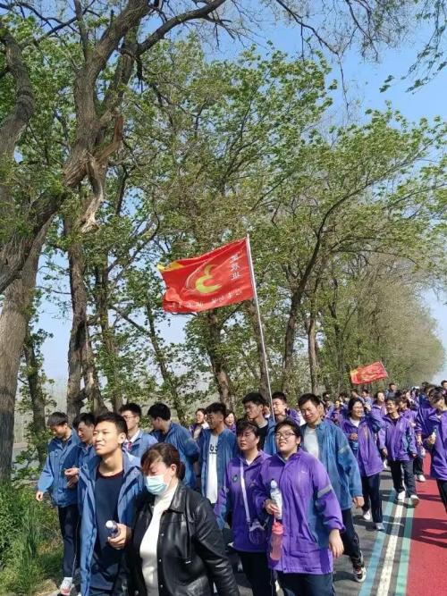 在楊明生“出發(fā)”號令聲中,各班班長擎旗領先,同學們兩人一組,正式開啟本次遠足拉練的征程。