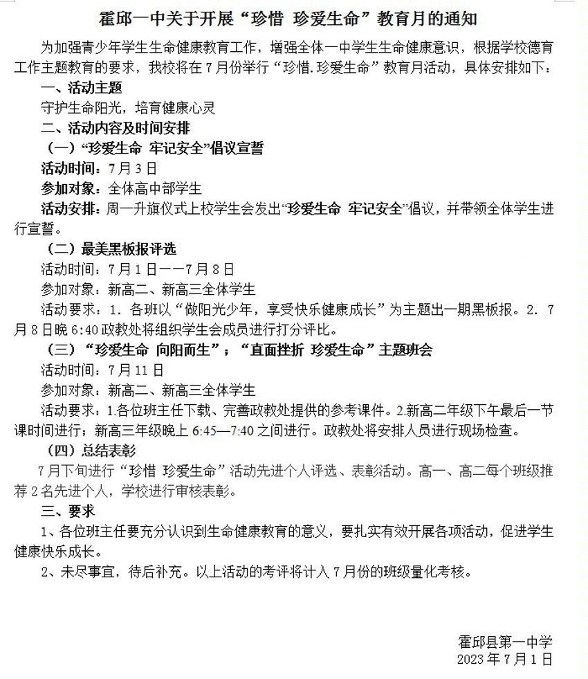 關(guān)于開展“珍惜 珍愛生命”活動的通知