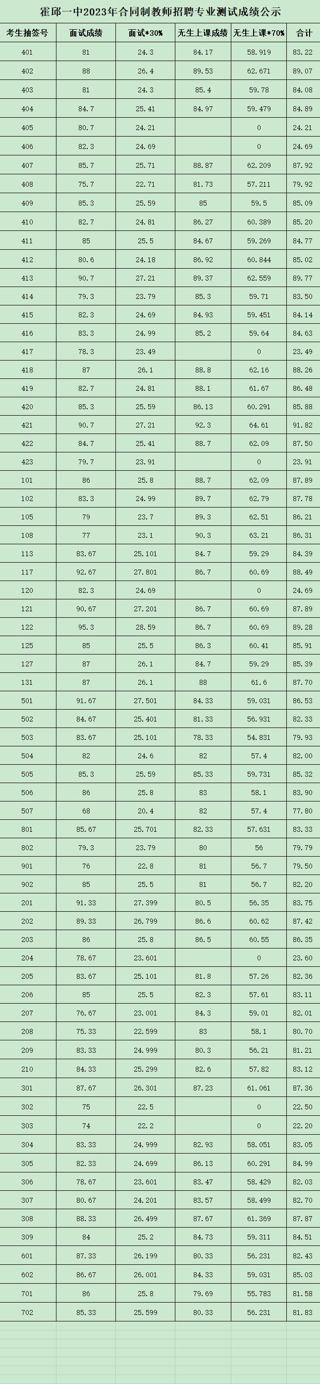 霍邱一中2023年合同制教師招聘專業(yè)測試成績公示