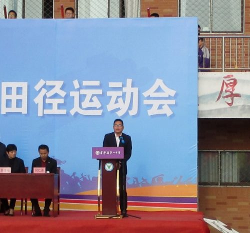 校黨委書(shū)記王德寶預(yù)祝運(yùn)動(dòng)會(huì)取得圓滿成功,宣布霍邱一中第53屆秋季田徑運(yùn)動(dòng)會(huì)開(kāi)幕。